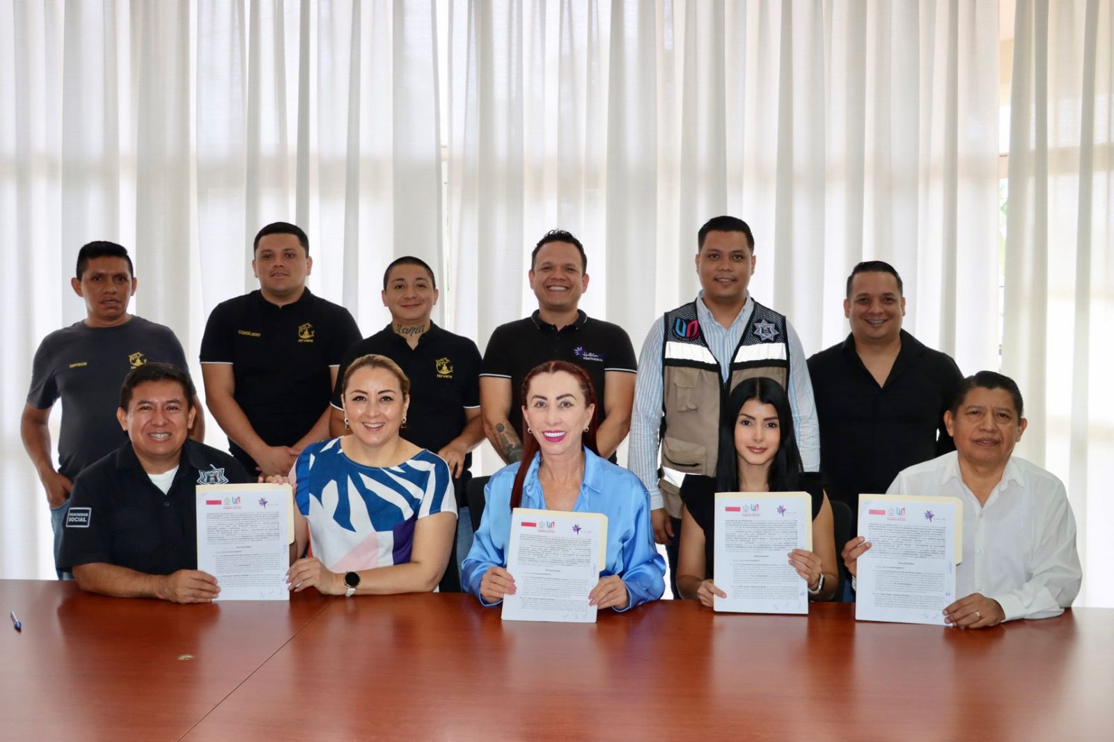 En la firma del convenio entre el Ayuntamiento de Villa de Álvarez y la Asociación Civil Huitzilin, participaron también Lizet Rodríguez, Secretaria del Ayuntamiento; Inocencio Guzmán, Director de Seguridad Pública de Villa de Álvarez, e integrantes de ese Centro Especializado en Tratamiento de Adicciones.