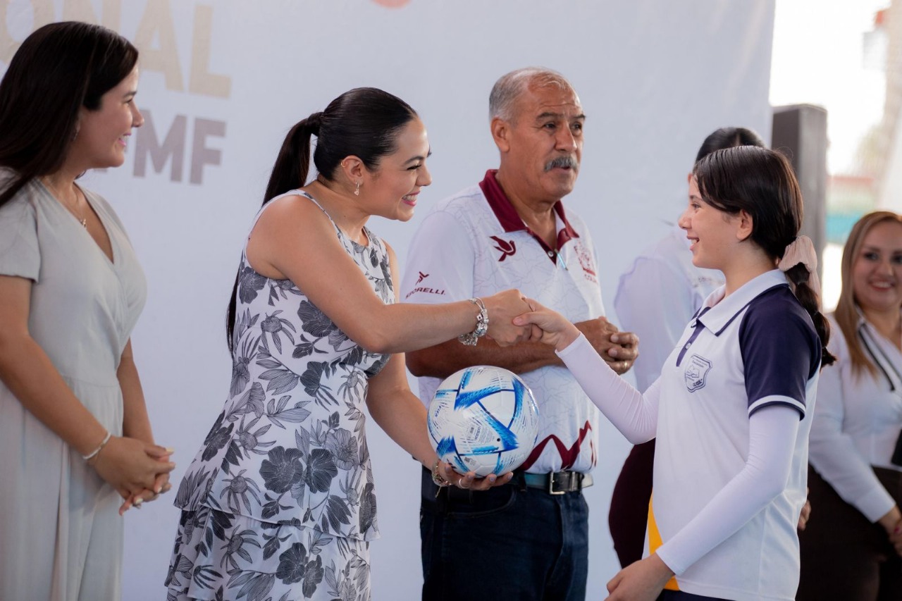 La gobernadora de Colima, Indira Vizcaíno Silva, inauguró este lunes el Torneo Nacional de Futbol Escolar, en su fase estatal, iniciativa impulsada por la Federación Mexicana de Futbol (FMF), en coordinación con la Federación Internacional de Futbol Asociación (FIFA), a través del programa ‘Jugamos Todos’, cuyo objetivo es fomentar la práctica deportiva y el desarrollo motriz entre estudiantes de escuelas primarias públicas y privadas.