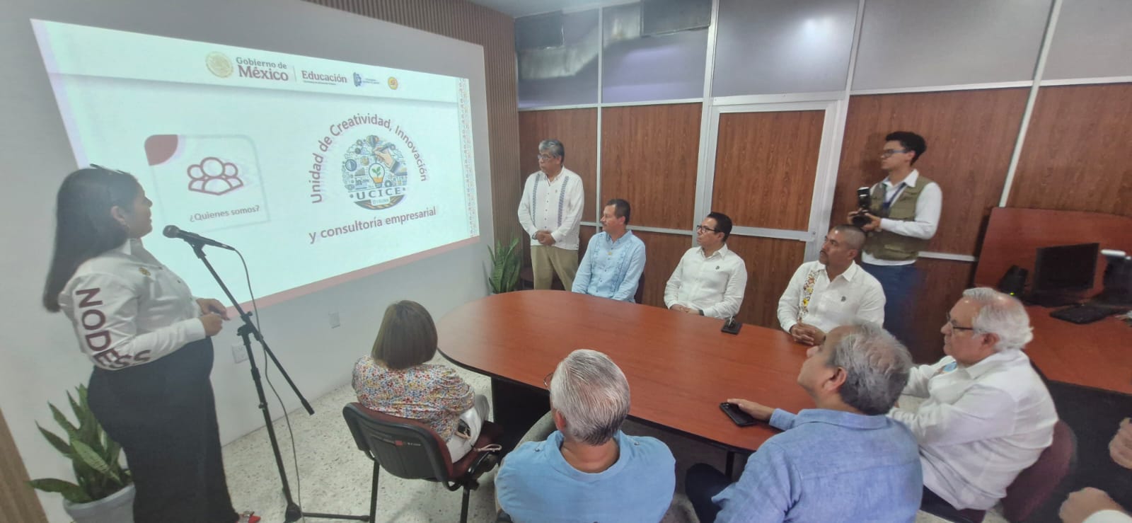 La encargada de la UCICE, María Guadalupe Venegas Moctezuma, jefa del Centro de Información del TecNM-Colima, expuso que el espacio es para que estudiantado aprendan y se vinculen al sector productivo.