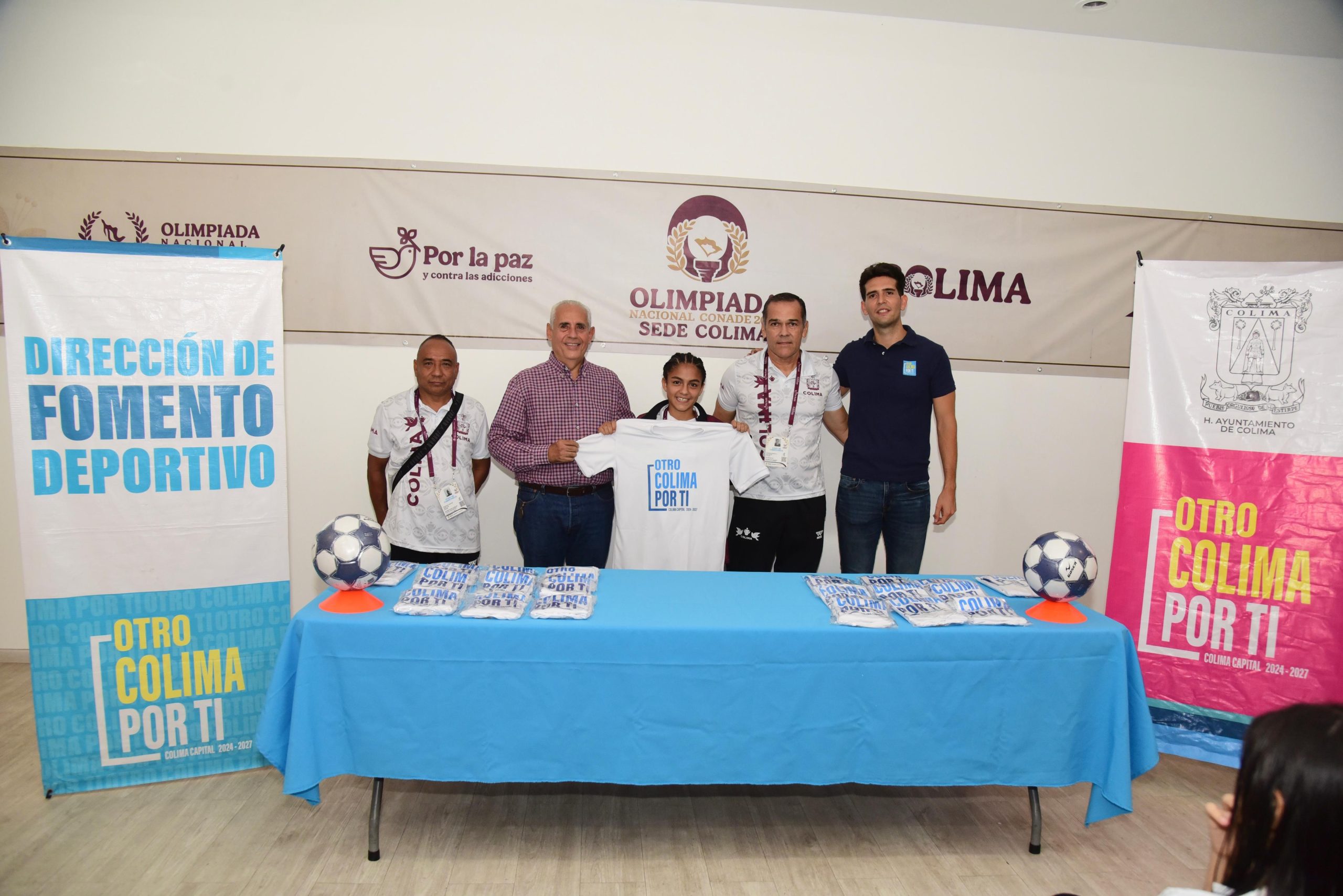 El Ayuntamiento de Colima, que encabeza el Presidente Municipal Riult Rivera Gutiérrez, realizó la entrega de playeras y material deportivo a las integrantes del Selectivo Estatal Femenil de Futbol, categoría Juvenil Menor, que representarán al estado en la Olimpiada Nacional CONADE 2025, la cual se desarrolla en el estado de Colima.