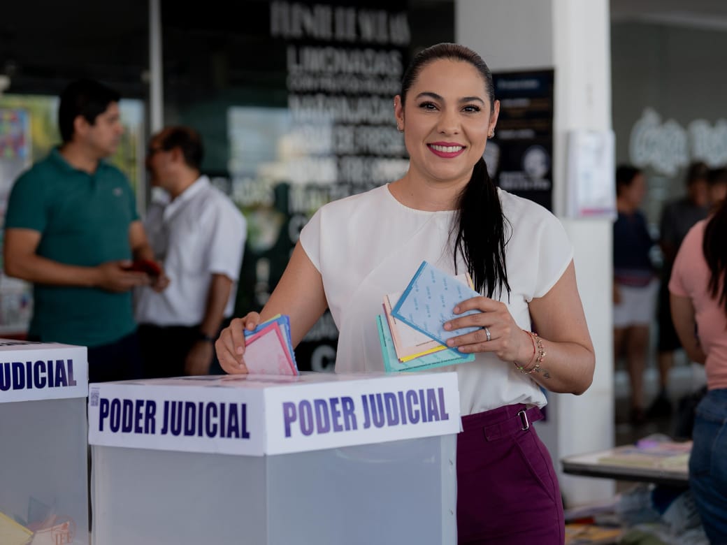La gobernadora de Colima, Indira Vizcaíno Silva, acudió la mañana de este domingo a ejercer su voto en la elección del Poder Judicial, a la casilla seccional B1 correspondiente a la sección 0387 en el municipio de Villa de Álvarez.