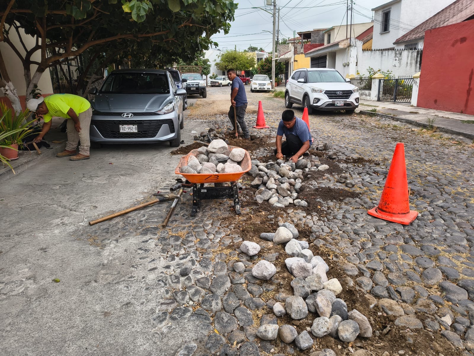 El Gobierno Municipal de Villa de Álvarez continúa realizando trabajos de bacheo en calles empedradas, mejorando son ello la seguridad vial al interior de las colonias, así lo manifestó la Presidenta Tey Gutiérrez Andrade.