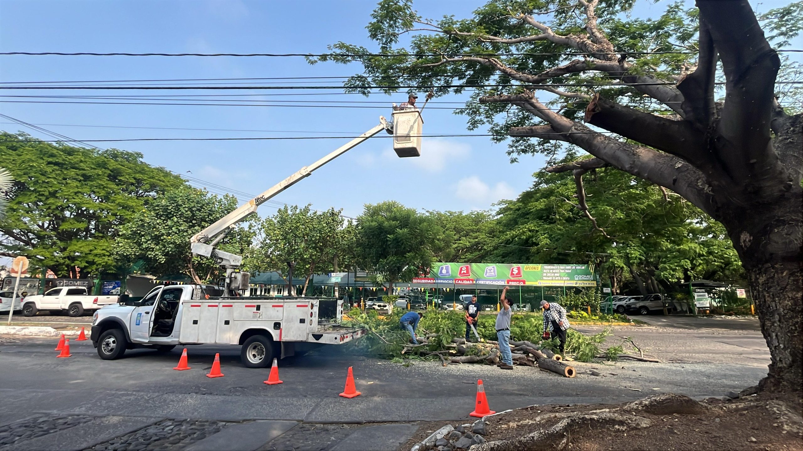 Con el firme propósito de prevenir riesgos durante la temporada de lluvias y velar por la seguridad de quienes transitan por las calles de nuestra ciudad, la Dirección de Parques y Jardines del Ayuntamiento de Colima no ha interrumpido ni un solo día sus labores de mantenimiento a la red de arbolado urbano.