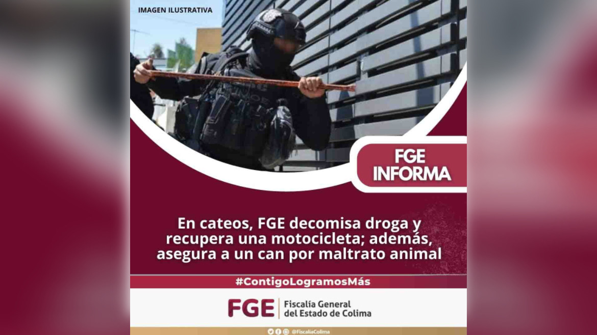 La Fiscalía General del Estado (FGE) ejecutó siete cateos en distintos municipios del estado como parte de las estrategias para combatir la delincuencia y garantizar la seguridad de la ciudadanía colimense.