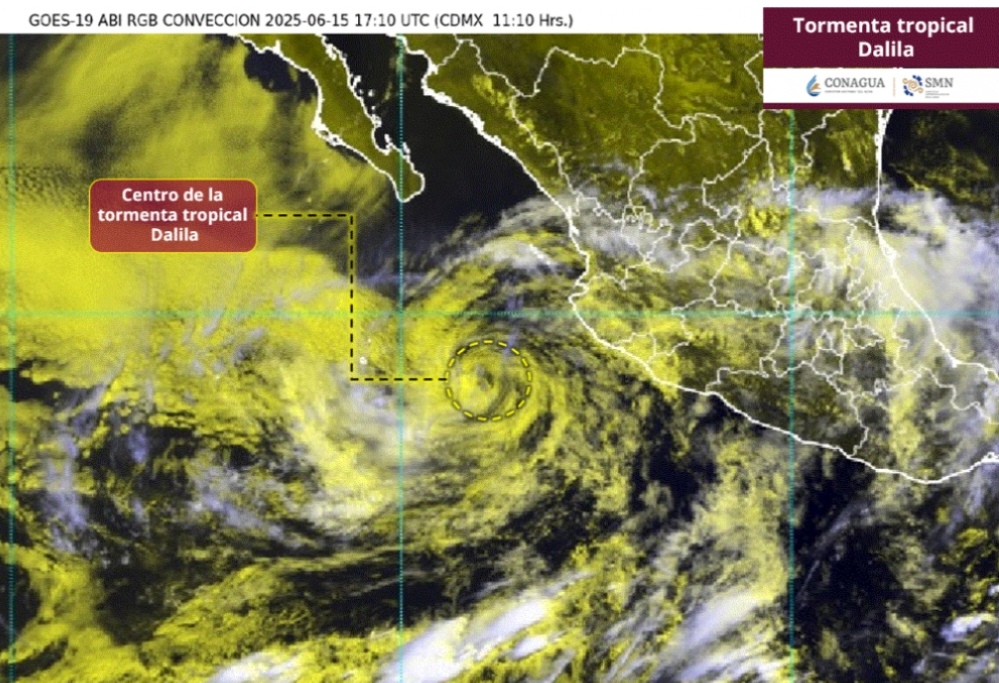La tarde de este domingo 15 de junio del 2025, se ha informado por parte del Servicio Meteorológico Nacional (SMN) ha informado que la Tormenta Tropical Dalila se esta alejando del occidente de la república mexicana.